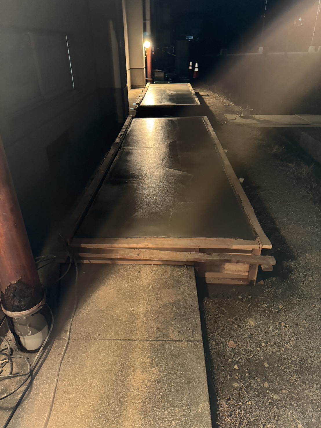 毎度~、早くも12月ですが皆様いかがお過ごしでしょうか😊 今回は設備の会社様からご依頼戴き、エアコン工事に入らせてもらいました!内容は、掘る!砕石を入れる!型枠を組む!コンクリートを打設!その他は設備工事も少々! 時期的に気温が低いからコンクリートが硬化するまでの時間が……、とりあえずやってみよう!って事でやってやってみる! しかし!予想通りなかなか硬化が始まらず遅くまでかかってしまった😅今の時期の風物詩といっても過言では無い🤣とりあえず養生だけして帰りましょ💪