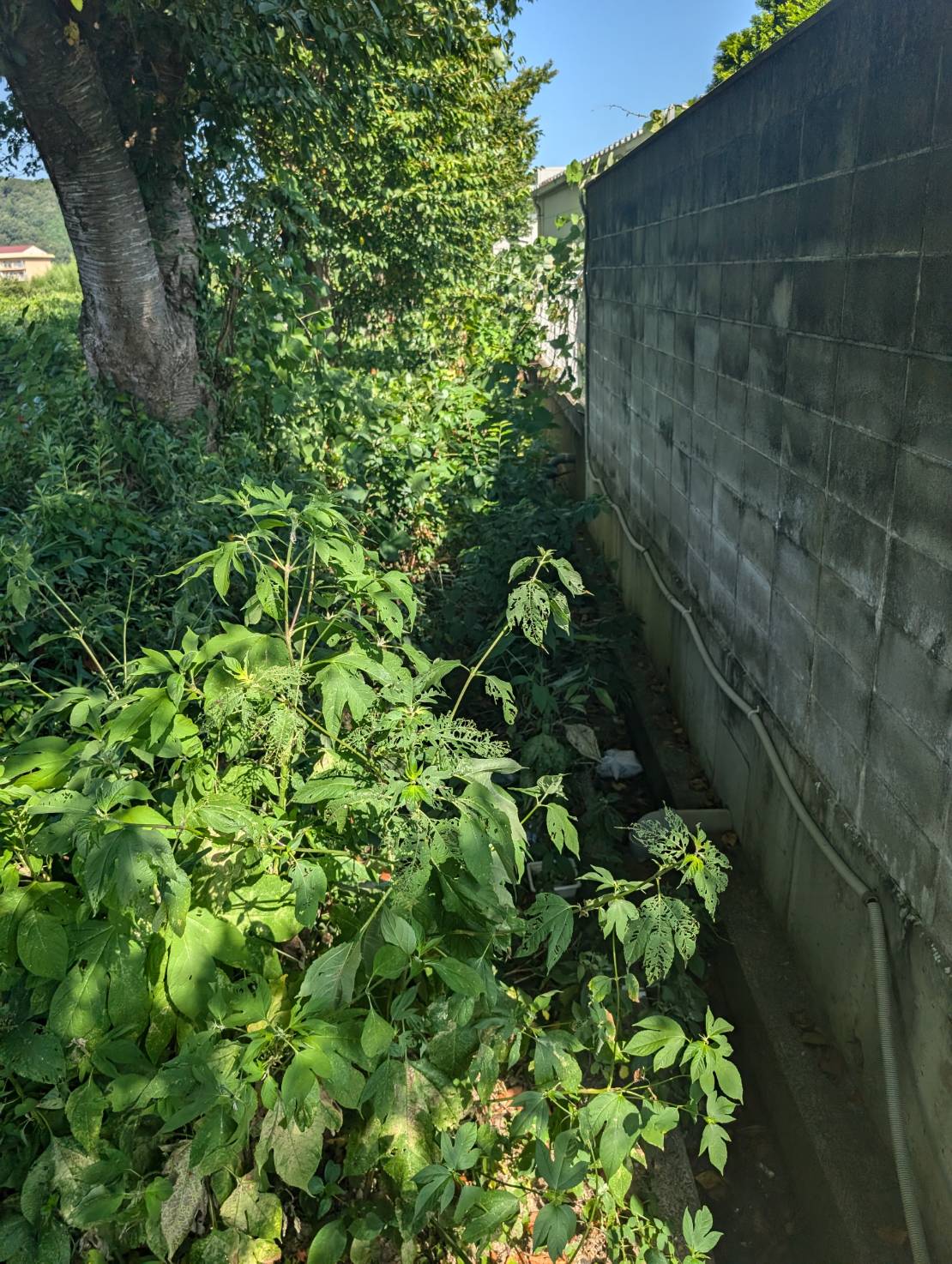 最近またサボり気味の翔栄工業 藤村です✨今回はコンビニ様から除草のお話しをいただきました!刈りっぱなしの仕上げで良きという事なので運搬や、処分は無しで話を進めさせて頂きました!背の高い樹木が並んでるんで日差しが遮られて少しは暑さが緩和されそうな予感☺️